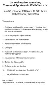 Liebe Sportsfreunde, liebe Mitglieder des TSV Wallhöfen, wie viele von euch mittlerweile mitbekommen haben, steht der TSV Wallhöfen (wie viele andere Vereine auch)