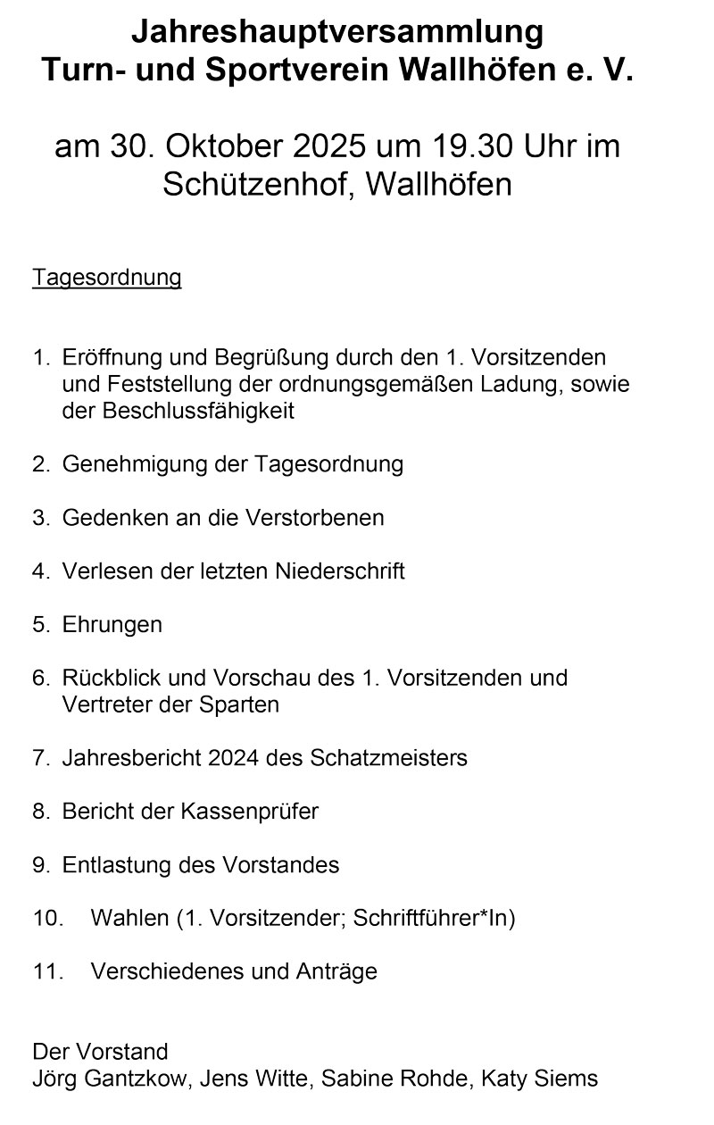 • Turn-und Sportverein Wallhöfen   eingetragener Verein von 1924